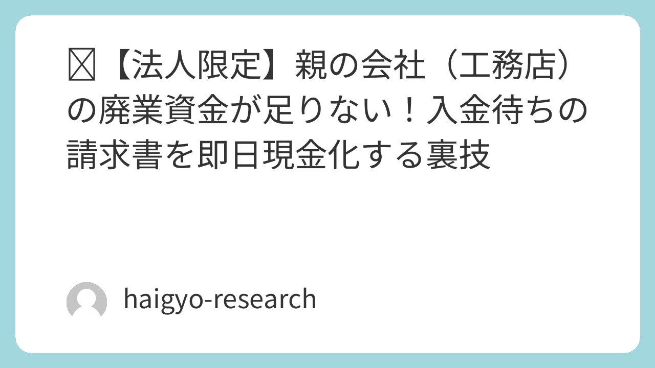 本記事では、廃業のXデーに突如として襲いかかる「黒字倒産(資金ショート)」の客観的な理由と、銀行から見捨てられた会社でも、借金を一切せずに「入金待ちの請求書」を使って即日現金を作り出す合法的な裏技(ファクタリング)を徹底解説します。