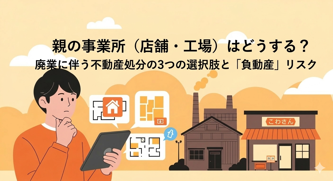 親が長年営んできた事業を畳む際、重機や在庫の処分と並んで、あるいはそれ以上に子世代を悩ませるのが「事業用不動産の扱い」です。工務店の資材置き場、町工場の建物、あるいは商店街の店舗など、長年ビジネスの拠点となってきた場所をどうするかという問題です。