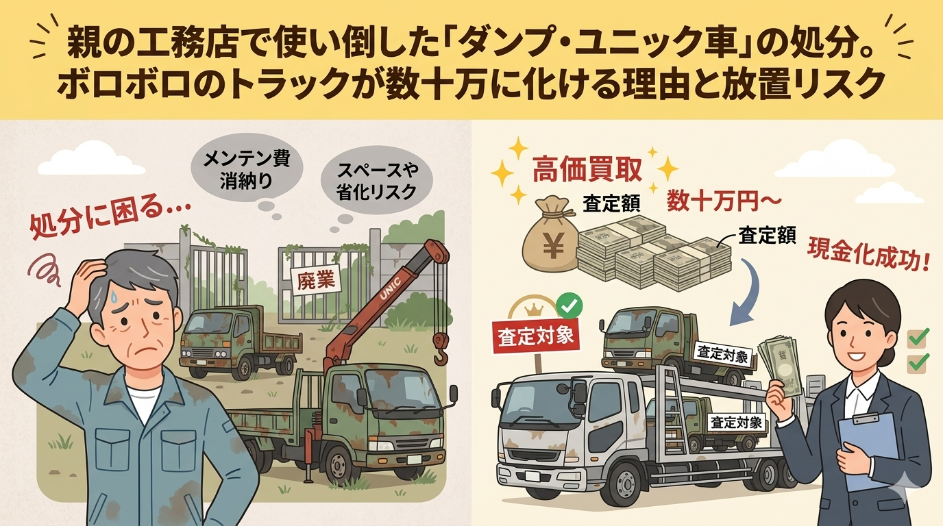 だからこそ、「もう古いからゴミだ」という主観を捨て、そのトラックの本当の価値を評価してくれるプロの市場へ送り出してあげてください。