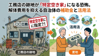 工務店を廃業した後の作業場や倉庫を放置していませんか?特定空き家に指定されて固定資産税が6倍になるリスクや、高額な解体費用を抑えるための「自治体の空き家解体補助金」の活用条件と注意点を客観的に解説します。
